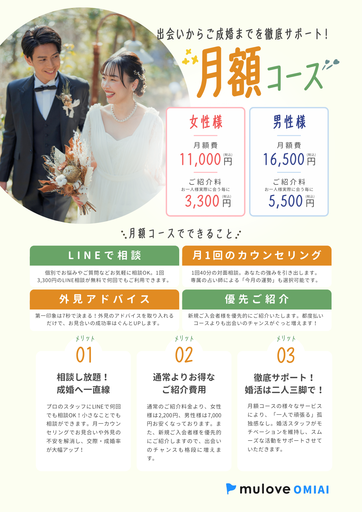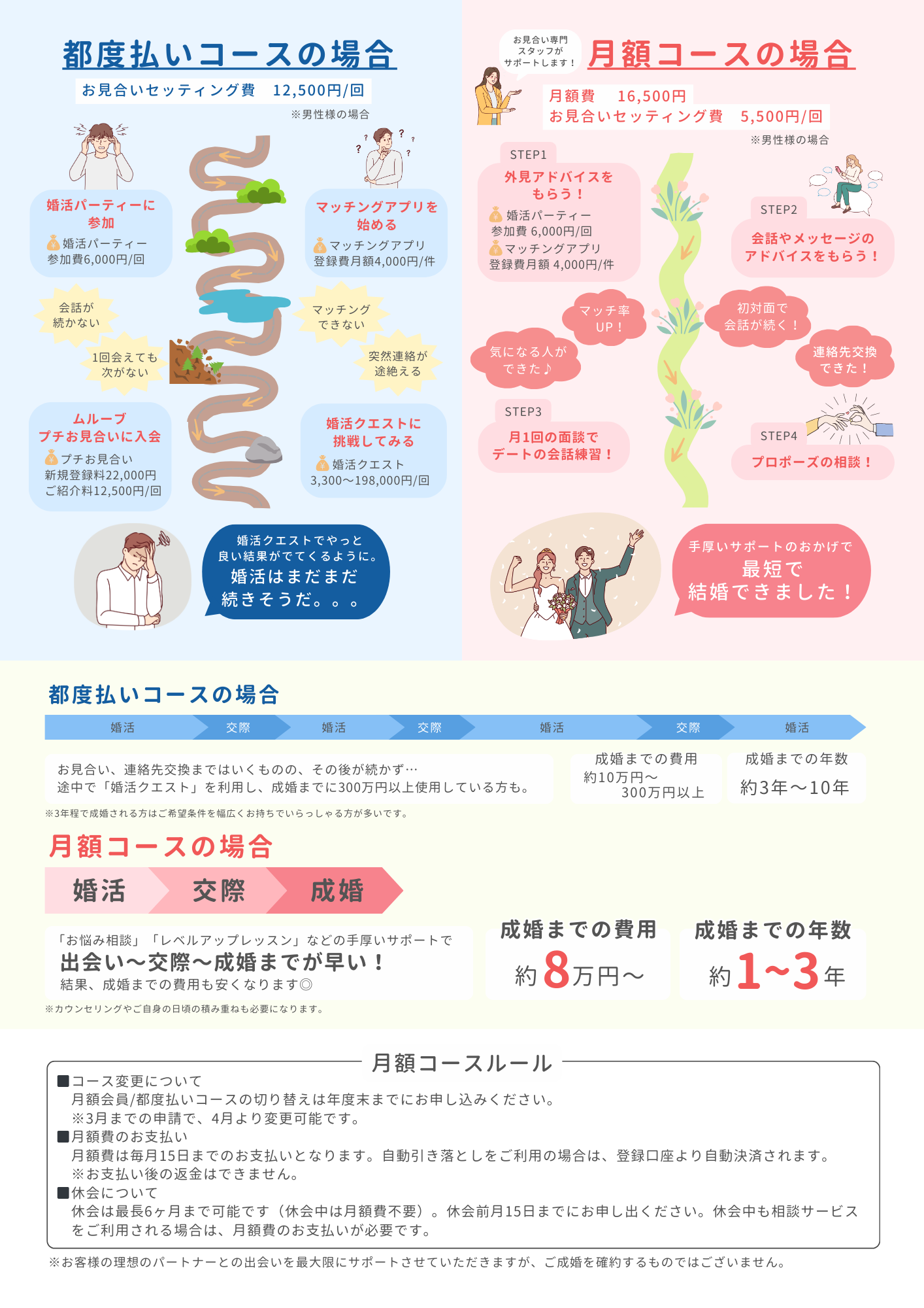 休会料、退会料、成婚料は不要です!